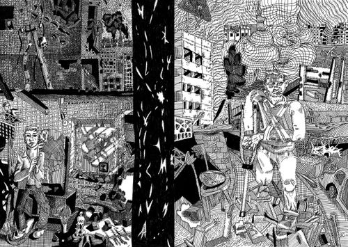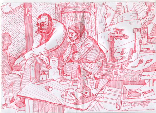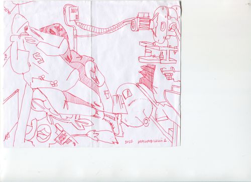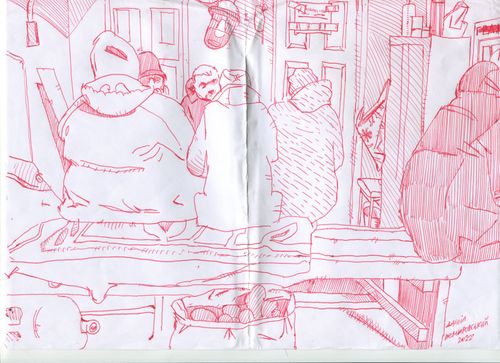 Замальовки зроблені з натури у блокадному Маріуполі під час перебування у місті в перші два місяці війни (повномасштабного вторгнення). У цілому, в перші місяці повномасштабного вторгнення я займався суто питаннями виживання і, на щастя, досяг в цьому успіху. Я зміг зберегти свій зір, руки та ноги і не отримав кулю в мозок, а також не помер від низьких температур та отруєння.