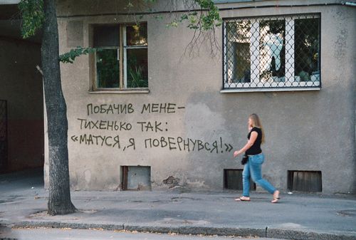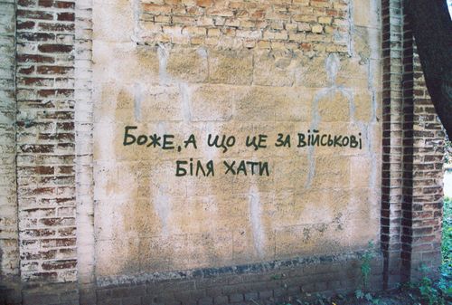 Це слова матері, яка втратила сина на війні – інтимні емоційні переживання, що радикально відрізняються від попередніх. Вони недоречні у публічному просторі. Вони походять із приватної сфери, а їхня емоційна виразність провокує інше розуміння війни написів, як і війни в цілому.