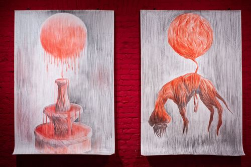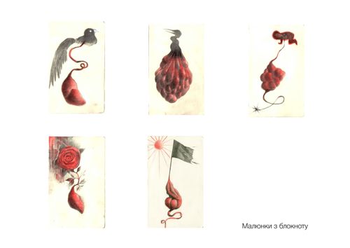 Серія графічних робіт є реакцією на повномасштабне вторгнення Росії в Україну. Перші малюнки були зроблені у блокноті на другий тиждень після евакуації з Харкова до Львова і стали єдиним способом описання того, що відбувалося навкруги. Роботи фокусуються на фізіологічному відчутті війни, звідси основними елементами всіх робіт є антропоморфні, шлункоподібні форми. Раніше «шлунок» фігурував у серії робіт автора «Причини та наслідки загоряння» — про передчуття війни та постійну тривожність через це. «Власне тривожність нерозривно асоціюється з відчуттям у череві, що ніби вивертає тебе зсередини», — говорить митець. У новій же серії, що є вже не передчуттям війни, а реакцією на неї, шлункоподібні форми метаморфозують та зрощуються з іншими елементами, ще більше підкреслюючи стан нестабільності і тривожності.