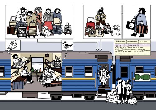 У серії Вчора було багато людей, яку Анна та Крістіна розпочали ще до повномасштабного вторгнення, з’являються зображення бомб та ракет. За словами художниць, вони мали великий сумнів і внутрішній спротив — друкувати їх чи ні, адже тоді бомби видавались чимось дуже абстрактним. З 24 лютого бомби і ракети, як і руїни в містах, стали болючею буденністю. Загроза знищення і втрата дому внаслідок бойових дій спонукали мільйони людей полишати свої рідні міста та села. Вони були вимушені скупчуватися на вокзалах в очікуванні потягу, що везе “в нікуди”, або сидіти у підвалах та на станціях метро. Позаду вони залишили чорну порожнечу, що не так давно була їх домівкою. Люди поступово розчиняються, залишаючи по собі тільки образи і спогади. Колись там, на зруйнованих вулицях і купах розбитого бетону, було багато людей.
