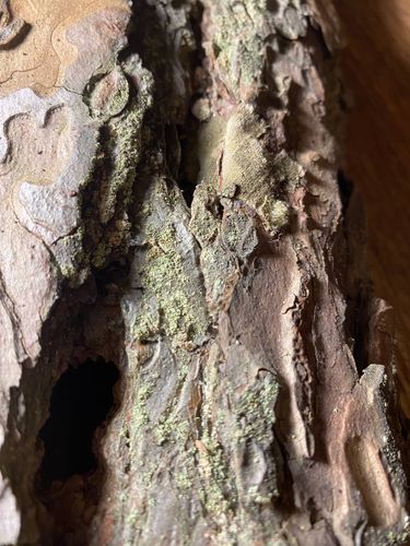 На корі, знайденій в лісі на Сумщині, проявляється клаптик камуфляжної тканини. Очевидно, розпочався процес адаптації середовища до людської війни. Ця мутація ускладнює розуміння хто саме камуфлює: людина чи не-людина.
