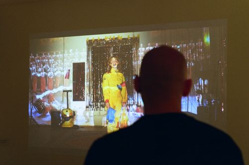 Робота іронічно осмислює питання любові до Батьківщини та відсилає до особистого досвіду художниці, яку під час навчання в коледжі змушували виконувати українські патріотичні пісні на шкільних заходах. Відтворення шкільного виступу є спробою переосмислити цей травматичний досвід і звільнитися від об'єктивізувального погляду на себе. Реквізит, наприклад, жовто-блакитні помпони, зроблені зі сміттєвих пакетів, і загальна хореографія відтворені на основі реальних спогадів. Проєкція на задньому плані – це реальний перформанс, в якому художниця брала участь у 2016 році.