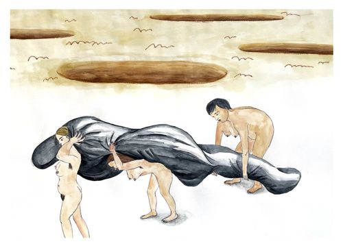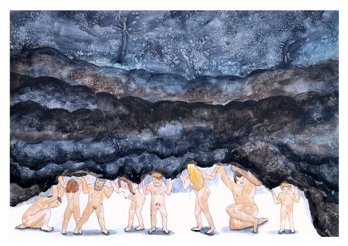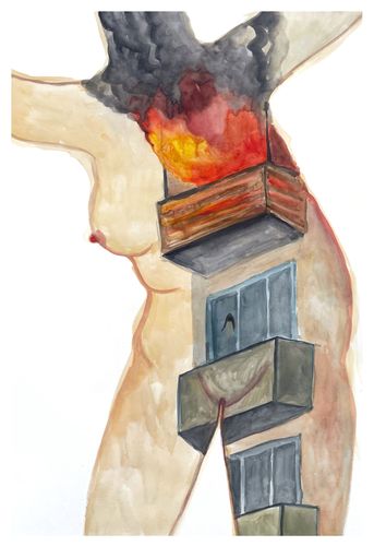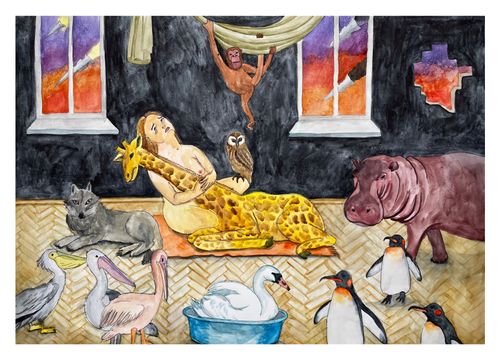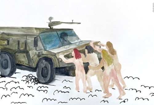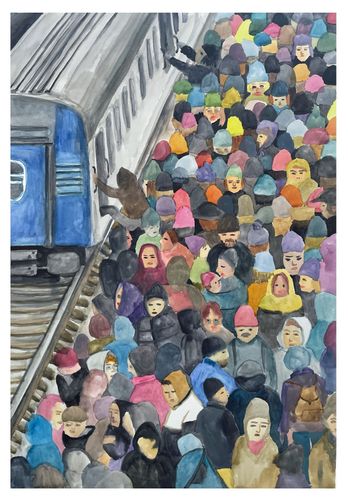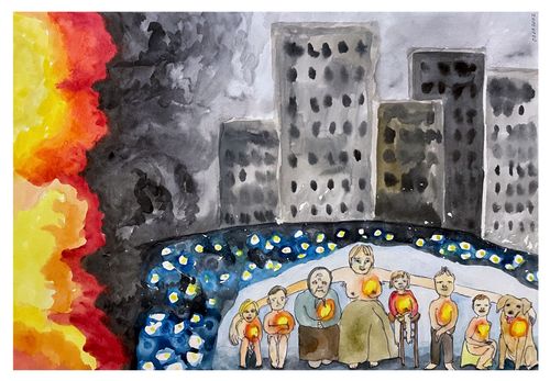 Наразі я намалювала досвід сидіння в укриттях із малими дітьми, старшими людьми і тваринами. Те, як жінки голіруч без зброї зупиняють БТР, намалювала натовп біженців на вокзалах і будинках, що палають від вибухів, — від них розриваються наші серця. Плану продовжувати цю серію і впевнена, що обов’язково буде картина про нашу перемогу.