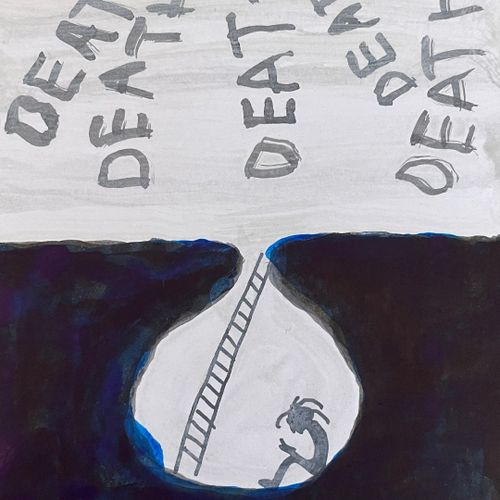 Проєкт розпочався в Берліні, де за чотири місяці до початку повномасштабної війни я створила першу картину. На ній зображена фігура з “кравчучкою”, яка чи то в музеї, чи то в супермаркеті обирає черепи. Мені важко пояснити собі, чому цей образ виринув у мене. Можливо, це сталося під впливом новин, що постійно з’являлися на той час та посилювали тривогу, або через несвідоме передчуття страшного всередині, але робота стала пророчою. Перші тижні війни я знаходилася в Києві, після чого була вимушена поїхати з України до Іспанії, де резиденція CeRCCa надала мені притулок. Протягом перших двох місяців я не могла працювати через неможливість збагнути та прийняти, що у моїй країні триває повномасштабна війна. Сама думка про можливість війни була неосяжною, а колективний біль — занадто глибоким. Виходячи з цієї неосяжності, розпочався проєкт “Розтин”. Роботи з цього проєкту намагаються проявити досвід, який я та інші українці та українки зараз переживають, і розібрати цей невимовний, всеохопний біль на більш дрібні частини. Сподіваюсь, що в такий спосіб він стане більш прийнятним для усвідомлення.