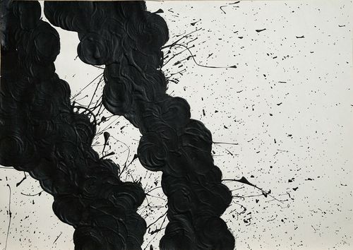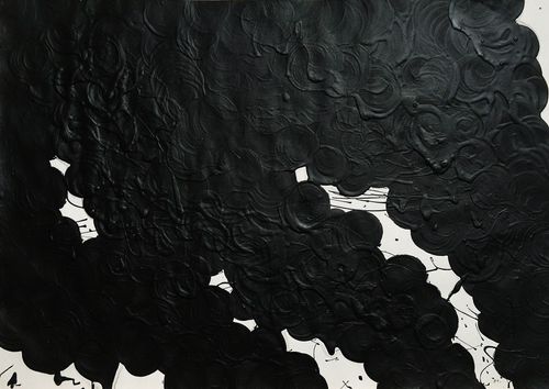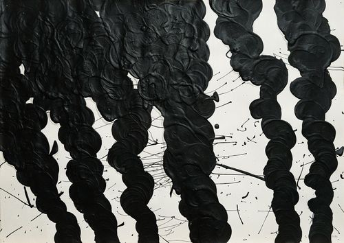 Ці зображення надзвичайно подібні, чорні обриси густого диму ніби повторюються з твору у твір. Вони одноманітні, але не однакові. Сліди вибухів і згарищ різняться, кожен акт агресії, кожна трагедія є унікальною. Водночас безкінечні новини про воєнні страхіття перетворюються в одностайний масив жахів і внутрішніх зламів.