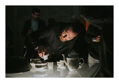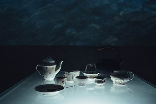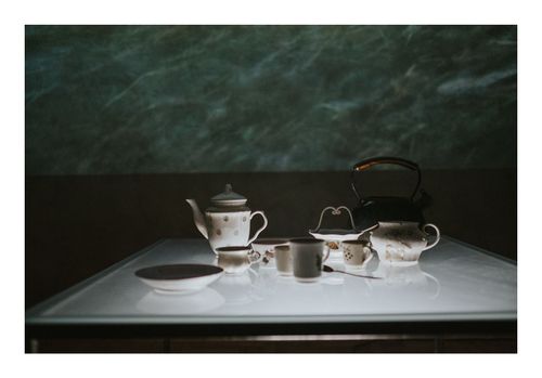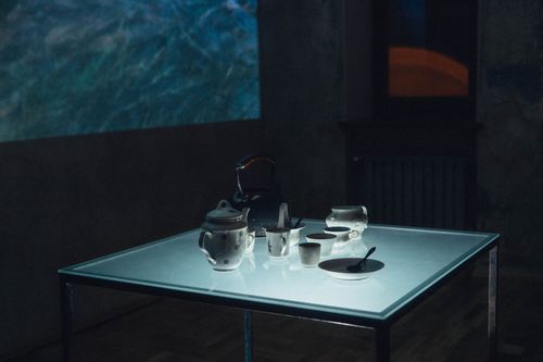 Експозиція, що складається зі знайденого посуду і відеоробіт, створена у форматі інтерактивного чаювання, на що нас надихнули щотижневі зустрічі під час резиденції. Річка Сян як символ очищення медитативно задокументована на відео, яке транслюється фоном для експозиції однієї з кімнат. Ми захотіли дати друге життя цим предметам та реалізувати їх конкретне призначення — дарувати людям тепло та затишок. Цей проєкт — знак подяки Народному дому за постійну допомогу українським біженцям. І оскільки дім — це місце, де завжди пригощають гарячим чаєм, на відкритті відбулася перформативна дія: ми наповнили пʼять горняток чаєм та запропонували символічно розділити їх з відвідувачами. На цих предметах видно сліди опіків та залишки згорілого скла, які неможливо очистити. Цей посуд нам надіслали наші знайомі, які втратили свої домівки. Ми мали можливість познайомитись з ними під час волонтерства та документальних зйомок наслідків російських злочинів.