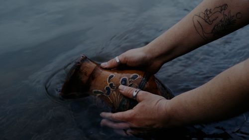 На відео представлений посуд, який уцілів у зруйнованих від російських обстрілів будинках на деокупованих і тимчасово окупованих територіях. Ці надломлені, обпалені предмети символізують стан українців, що пережили евакуацію з небезпечних зон. Річка Сян постає як образ Народного Дому, який прийняв до себе українських біженців, огорнув їх і омив рани, заподіяні війною.