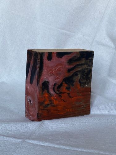 Серія робіт ”Випалена Земля” — це міркування над знищеними містами та селищами, де відбувалися або й досі тривають бої. Там лишались і лишаються люди, що живуть попри смерть, яка вирує поруч. На випаленій землі вірують, сплять, тримають побут, шукають харчі, працюють і знов вірують.