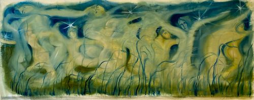 З ескалацією війни вся практика художниці зосередилась на колективних травмах поколінь, що, як виявилось, ніколи не залишались в минулому. Намагаючись прожити жахливі події, Сана у своїх образах зверталася як до нестерпних весняних новин, так і до історичних злочинів проти українців та українок. Евакуація з-під обстрілів, порятунок дітей і тварин, теми материнства, голоду, спротиву і розорення природи у творах Сани міфологізуються, стають водночас і вічними художніми сюжетами, і свідченнями геноциду.