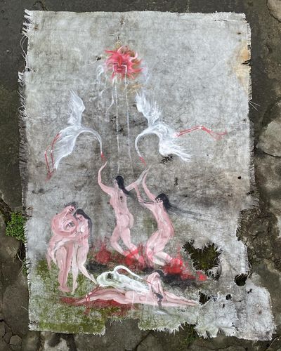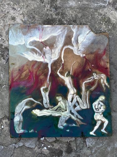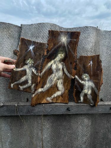 Ця серія об’єднує численні роботи, в які художниця вклала весь біль і розпач війни, що продовжує безжально знищувати все живе. Всі вони намальовані на вкрай різноманітних поверхнях — здебільшого це ті матеріали, які авторка напіввипадково знаходила довкола себе. Серед іншого, це обрізки шпалер, кора дерев, гнилі та не гнилі дошки, картон, вогнетривке старе полотно тощо. Все це Сана знаходила в сараї своєї бабусі, який слугував їй за майстерню протягом перших трьох місяців повномасштабного вторгнення.
