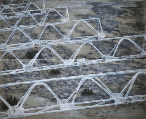 Я розпочала цю серію в серпні 2022 року після довгої розлуки з Одесою. Тоді, влітку, я відчула на пляжі зовсім нову, апокаліптичну атмосферу. Я також звернула увагу на іржаві металеві конструкції, які завжди були частиною цього морського пейзажу. Колись, за радянських часів, на них клали важкий шифер. Це створювало тінь для відпочивальників, які сиділи знизу на піску. Ці споруди - примари Радянського Союзу - лише скелети. Сьогодні ці конструкції не можна використовувати за їхнім першопризначенням. Якщо ми вирішимо «повернути їх до життя» і покладемо на них важкий шифер – вони зламаються. Тут я проводжу аналогію з імперіалістичним бажанням росії повернути свій вплив над колишніми країнами-учасницями Радянського Союзу. Це спроба відновити стару систему - повернути до життя те, що вже мертве. Невдала і небажана спроба.