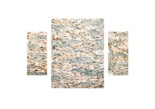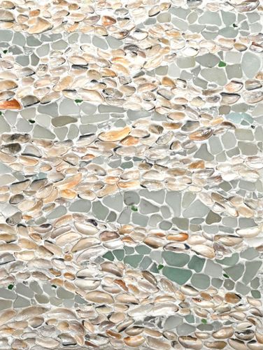 Важливою і поетичною деталлю цього проєкту є мозаїка. У ній я використовую мушлі й камінці з пляжу «Аркадія», що, за моїм проханням, були зібрані рідними, друзями, знайомими протягом 2022/2023. Ці мушлі є свідками того періоду, свідками змін.