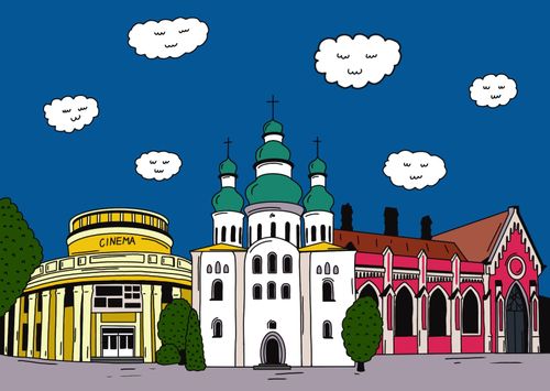 Ця серія із 24 цифрових ілюстрацій створювалася протягом березня 2022 року як реакція на повномасштабне вторгнення росії в Україну. На них я зобразила міста, постраждалі від російської агресії, такими, як вони виглядали "до".