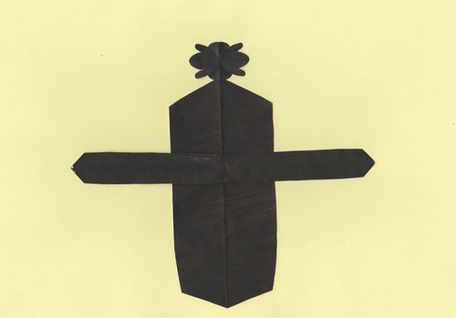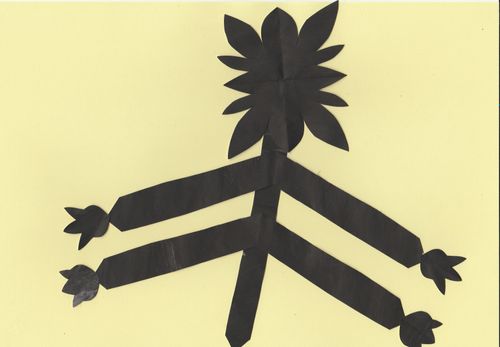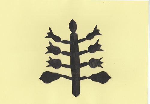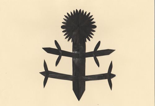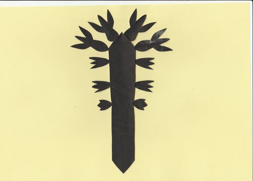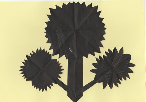 Маючи з матеріалів лише папір, я почала пригадувати дитячий досвід, яким за можливості ділилась зі своїми учнями на онлайн уроках. Тобі нічого не потрібно крім шматка "чогось", що схоже на папір. Можна, працювати руками, відриваючи шматочки, обережно-турботливо або зі злістю. "Чорний ліс" був "деревом життя", що згодом перетворилося на купу стебел та паліччя у вигляді хрестів.