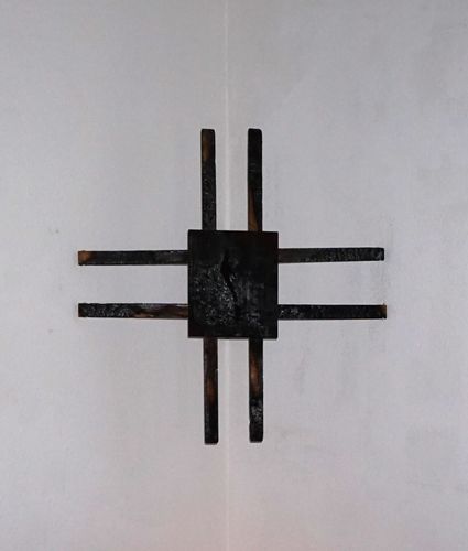 Щоденник доповнює дерев’яна інсталяція, пов'язана з переосмисленням спогадів, що асоціюються з домом. Моє дитинство пройшло в старій хаті-мазанці у місті Васильків. На початку повномасштабного вторгнення почалося бомбардування нашого містечка, підірвали аеродром, нафтобазу і декілька будинків, ворожий десант висаджувався на сусідніх городах. Ми боялися, що нашого будинку, який розповідає історію 4 поколінь однієї родини, вже немає. Що у нас вкрали спогади, спаливши і знищивши їх. Особливий символічний зміст у традиційних українських хатах має кут, в якому розміщувались ікони та сакральні образи. Коли в дитинстві я не могла спати, бабуся завжди казала, що сон ховається в кутку. Я переосмислюю ідею кута, розміщуючи всередину старі обвуглені дошки, намагаючись зберегти частину власної історії.