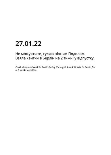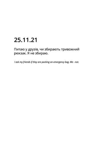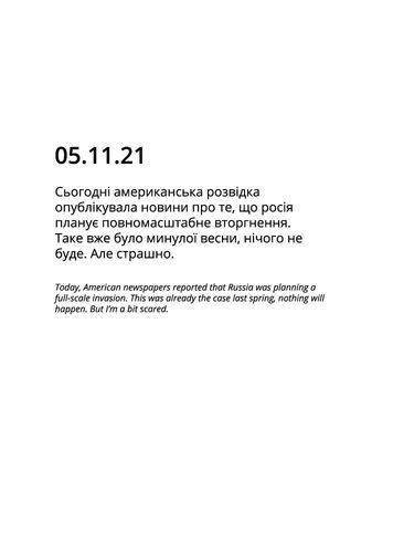 «…» — мій особистий щоденник, який я почала вести в листопаді, коли в новинах з’явилася інформація про потенційне повномасштабне вторгнення, поступово фіксуючи зростання напруги. У профілі відображені лише окремі сторінки щоденника, відібрані авторкою.