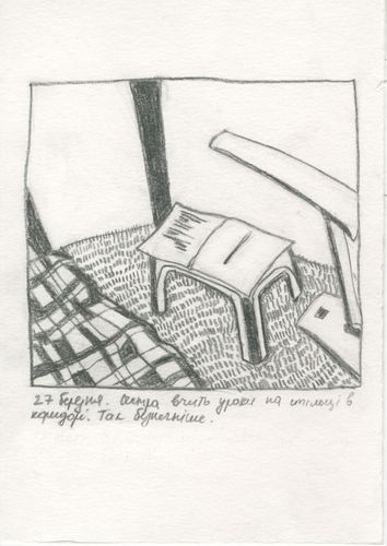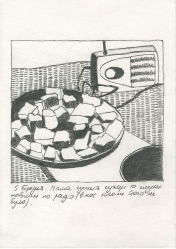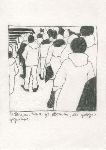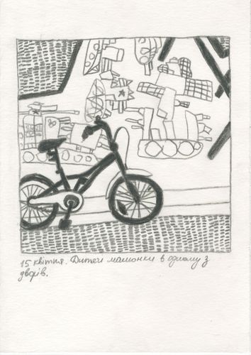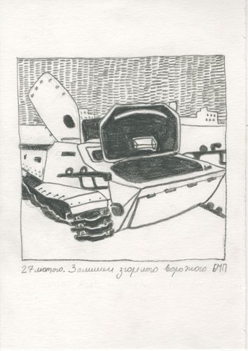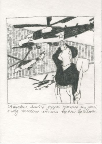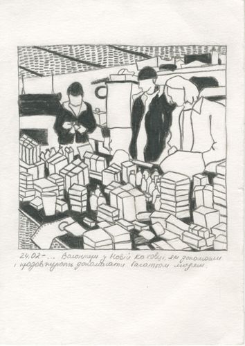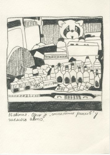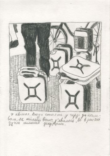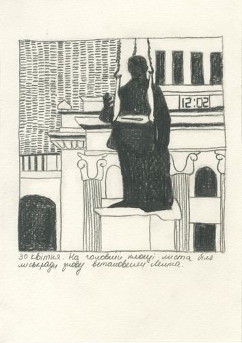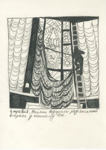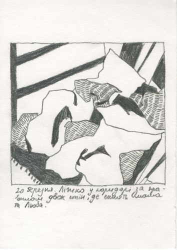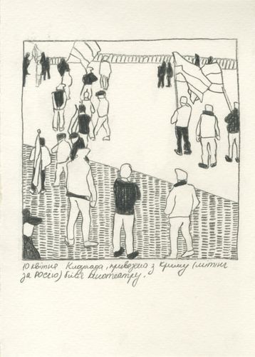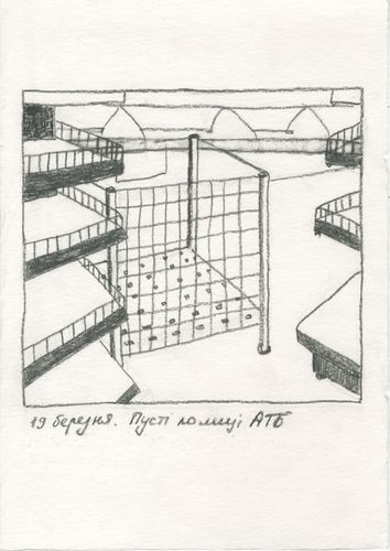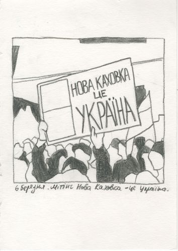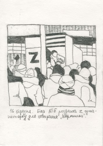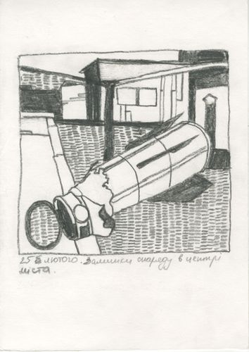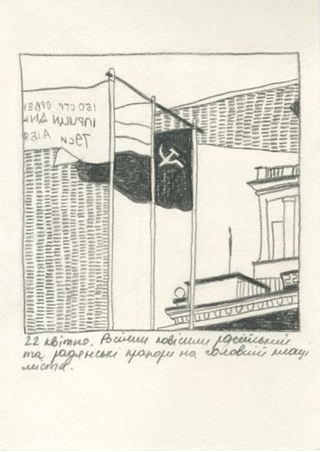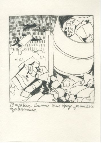 У представленому варіанті серії між двох частин є центральне зображення з «шумом», створеним з текстури, яка є й на інших малюнках. Шум тут символізує «невідомість» якою пронизане життя в окупації. Тож він є зображенням усіх тих подій, які ще «невідомі, невідкриті», про які усі можуть здогадуватись, але поки місто знаходиться в окупації, немає відповідних фотодоказів.