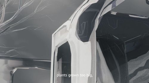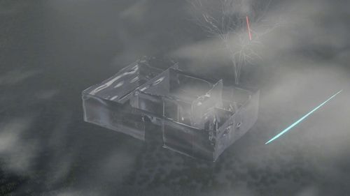 Після кількох тижнів в евакуації я відтворив по пам’яті залишену у Вінниці квартиру. «Будинок зі скла» — це подорож навколо об’єктів пам’яті, що пов’язані із домом (архетипи дому, дерева, шляху та домашнього декору), а також орієнтування та подивування в середині метафізичного віртуального ландшафту.