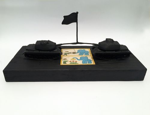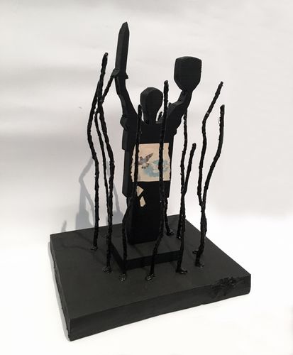 Про війну я дізнався вночі. Подруга, яка мала того дня принести мені суп до майстерні, зателефонувала і повідомила, що почалася війна. Сказала, що потрібно ввімкнути новини, і кинула трубку, бо сама поспіхом збирала речі для евакуації. Весь цей жах за два тижні перетворився на рутину, до страшних сирен і вибухів я вже звик. Їжаки та блокпости встигли стати начебто звичайною частиною міського пейзажу. Тож свідомість розглядає це як буденне життя, а через такий стан робиться тільки гірше. Першого дня я відразу пішов до майстерні, ввімкнув дезкор і почав малювати те, що сталося за ці кілька годин. Здається, не так і довго, але вистачить, на жаль, ще на чимало картин.